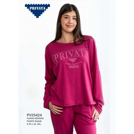 La camiseta tiene cuello caja con un estampado alusivo a la marca "PRIVATA" en tono rosado, mientras que el resto de la prenda es de color rosa maquillaje oscuro y liso. Cuenta con aberturas laterales.
