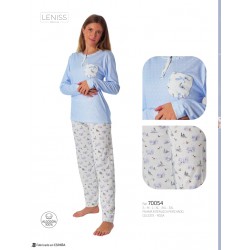 La parte de abajo tiene elástico en la cintura. Es de color blanco con pequeños paisajes invernales en tonos celestes.