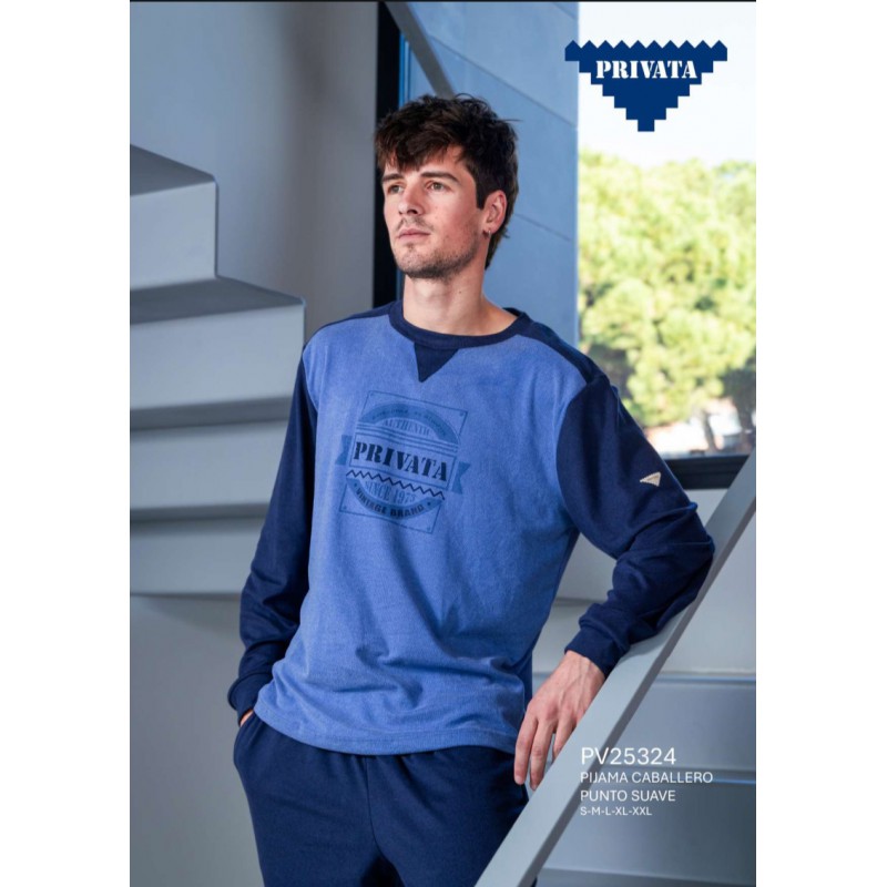 Pijama de hombre en punto de poliester y spandex combinando color azafata y marino.